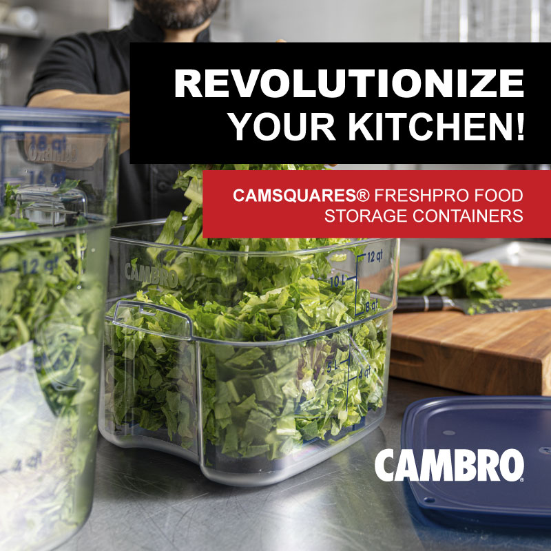 Durable food storage containers, transport equipment, and shelving systems built for food safety and convenience.