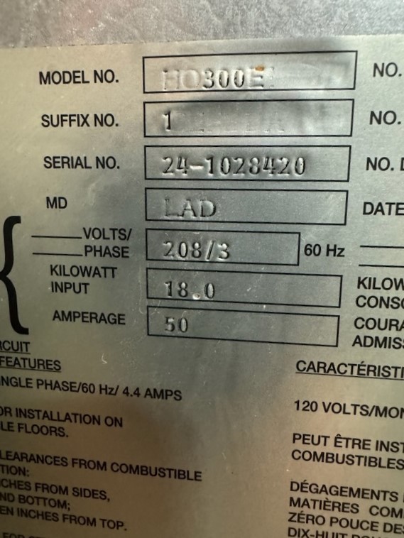 Model #HO300E-Electric-208V-3 Phase Mini Rack Oven
