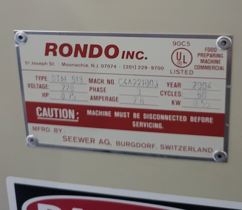Model STM 513, Rondo Bench Dough Sheeter, 220V-3 Phase, 19″ Roller Length